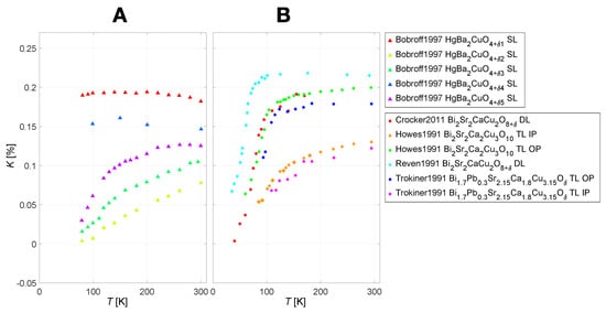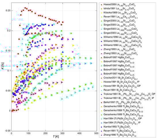 | LaSrCuO | 0 K | Thurber1997 | [65] | s.c. | 9 T | 1450 K |