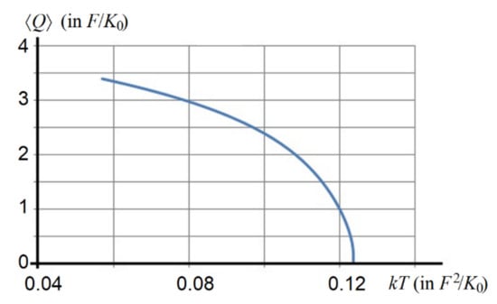 Temperature dependence of the order parameter ⟨Q⟩ (in units of F/K0) in the tetragonal phase versus kT (in units of F02/K0). At kT ≈ 0.123 F02/K0, the off-center displacement of the atom B smoothly drops to zero, manifesting the second-order phase transition [6].