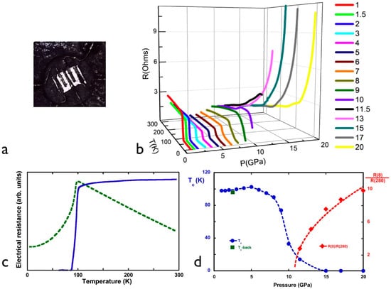 - Tang, J.; Okada, Y.; Yamada, Y.; Horii, S.; Matsushita, A.; Kosada, T.; Matsumoto, T. Pressure effect on Tc in RBa2Cu4O8 (R, Sm, Er, Dy) superconductors. Phys. C Supercond. 1997, 282, 1443–1444. [Google Scholar] [CrossRef]
