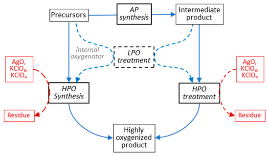 Flowchart of possible HP synthesis routes for strongly oxygenated cuprates. In HPO synthesis, the final product is formed under pressure by reacting precursors together, where oxygen is provided by either an internal or external oxidizer. In HPO treatment, the ready-made product is oxygenated by an external oxidizer. In either case, intermediate LPO treatment can be used to boost the final oxygen content.