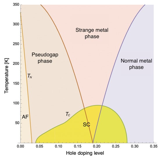 - Zaanen, J. Why the temperature is high. Nature 2004, 430, 512–513. [Google Scholar] [CrossRef]
