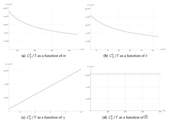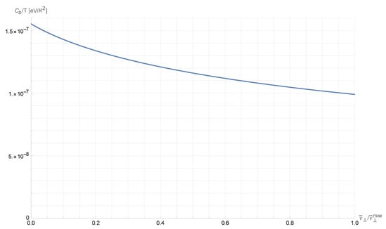 where we have introduced the parameter . Of course, in order for this expression to make sense, the condition must hold, which can be expressed as , where . Experimentally, we know that , but it may be interesting to evaluate the trend of the specific heat as the parameter varies within its entire validity domain, which is what we show in Figure 2.
