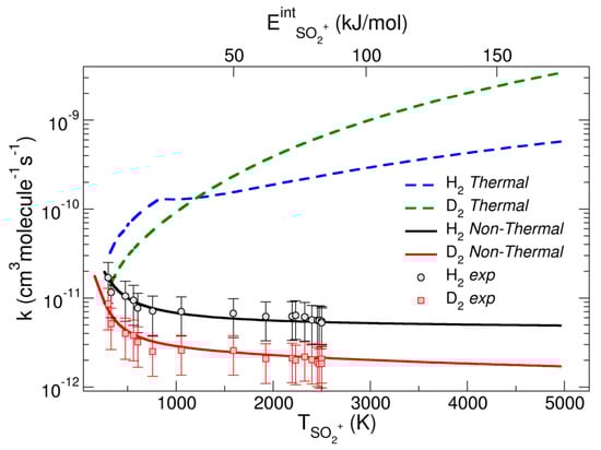 k for the reactions of SO2•+ with D2 and H2 computed with the non-thermal model and with thermal equilibrium conditions. Reproduced with permission from [27]. Copyright (2020) John Wiley & Sons.