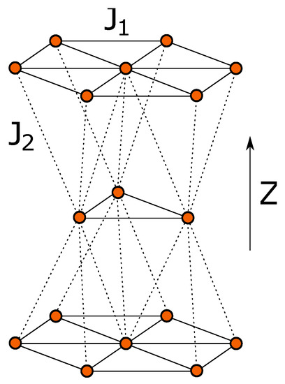 - Ngo, V.T.; Diep, H.T. Phase transition in Heisenberg stacked triangular antiferromagnets: End of a controversy. Phys. Rev. E 2008, 78, 031119. [Google Scholar] [CrossRef]