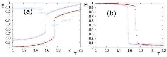 - Ngo, V.T.; Hoang, D.T.; Diep, H.T. First-order transition in the XY model on a fully frustrated simple cubic lattice. Phys. Rev. E 2010, 82, 041123. [Google Scholar] [CrossRef] [PubMed]