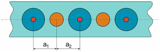 To address the above, general ideas, let us consider a defect-containing two-sublattice () microresonator chain (see Figure 1), with same-type quantum dots embedded in one of the sublattices (e.g., in the first one). The concentrations of structural defects associated with variations in the microcavity positions are represented by C1 and C2.