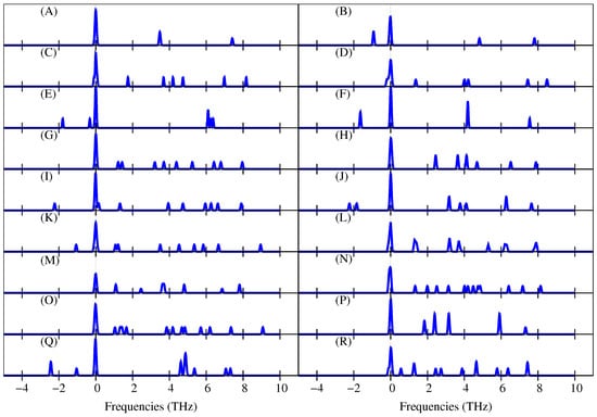 As an additional result, in Figure 4, it can be seen that the vibrational frequencies of the copper clusters are between 0 and 10 THz.