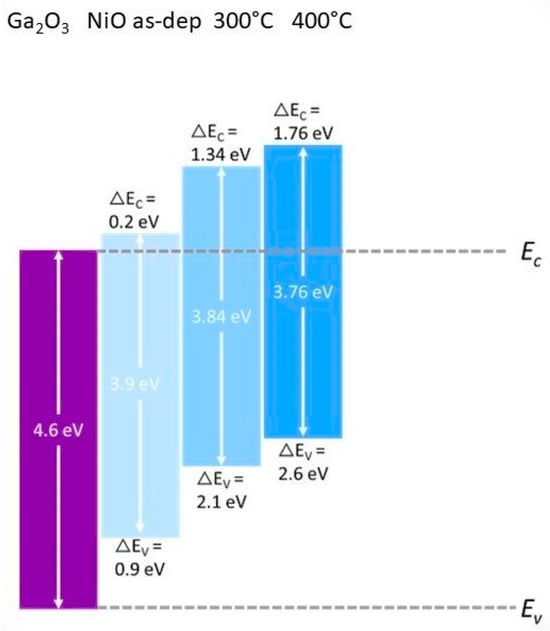 Band diagram for the NiO/Ga2O3 heterostructure as a function of NiO postdeposition annealing temperature (after ref. [12]).