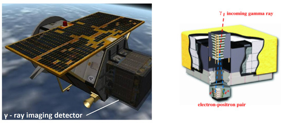 - AGILE: Italian mission. For the first time, AGILE [17] combined, in a single satellite (see Figure 2), a gamma detector (Si-W tracker [18,19], a 30 MeV–50 GeV), an X-ray detector (Si, 18–60 keV), a CsI Calorimeter [20] for the reconstruction of the ray energy gamma and an anti-coincidence system. Launched in 2007, in 2012 it was awarded with the Bruno Rossi prize for having revealed a variability in the emission of the Crab nebula, recording flares likely linked to the neutron star rapidly rotating on its axis [21].