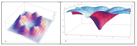 We identify the process which underpins the cell division process captured in Figure 7b with that in Figure 8a, which reveals stationary solutions of a time-dependent Schrödinger equation in a 3D harmonic oscillator potential, whilst Figure 8b reveals successive figures, giving the isovalues of the density of probability for 16 time steps. The first and last steps ( and ) are solutions of the stationary (time-independent) Schrödinger equation, whilst intermediate steps are exact solutions of the time-dependent Schrödinger equation reflecting transient structures. Figure 8b shares a number of common features with the bifurcation process in Figure 5b, the key difference being that in the case of bifurcation, the previous structures remain and add to themselves instead of disappearing as in cell division. The only other difference lies in the quantum of action, with Figure 5b being based on ℏ rather than a macroscopic constant in Figure 8b, although the bifurcation process (Figure 5b) is also valid for a macroscopic quantum system at both sub-cellular and multicellular scales.