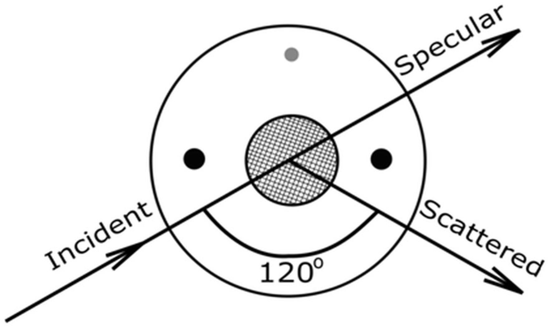 Figure 4 shows button ray tracings for specular reflected radiation and the scattered radiation that reached the detector. Specular reflection, which continued in the same direction as the incident beam, was not detected [
