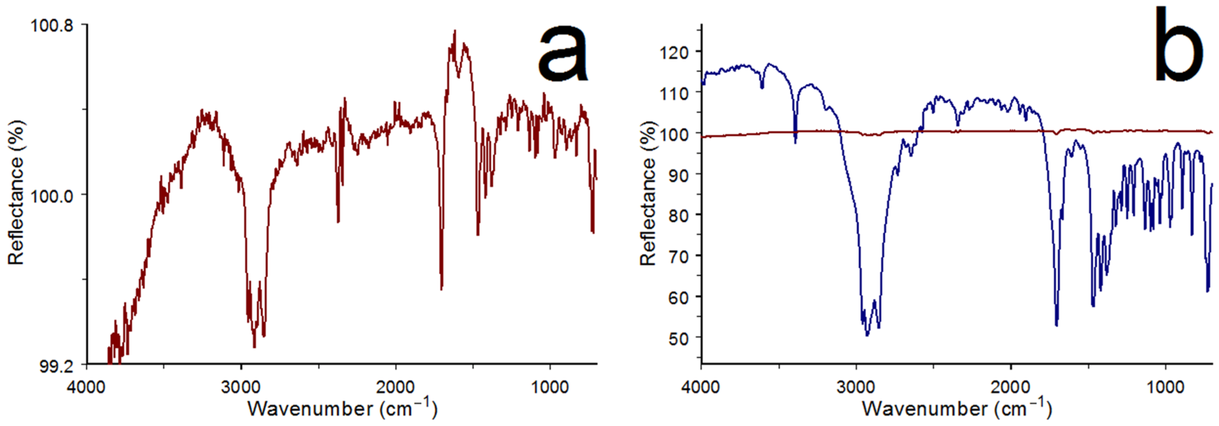 Figure 7a were barely visible. The infrared spectrum bands in