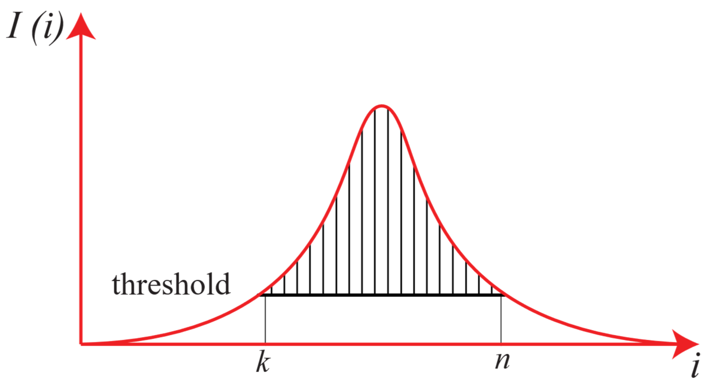 Representation of GC method for laser stripe extraction. Only values above threshold are considered. There are n −k black vertical lines representing pixels i rows above threshold.
