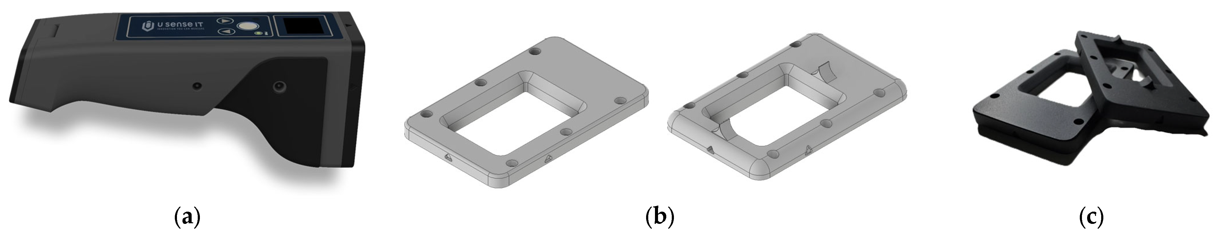 Figure 4b,c. This modification represents a low-cost design enhancement that improves positioning repeatability and user handling.