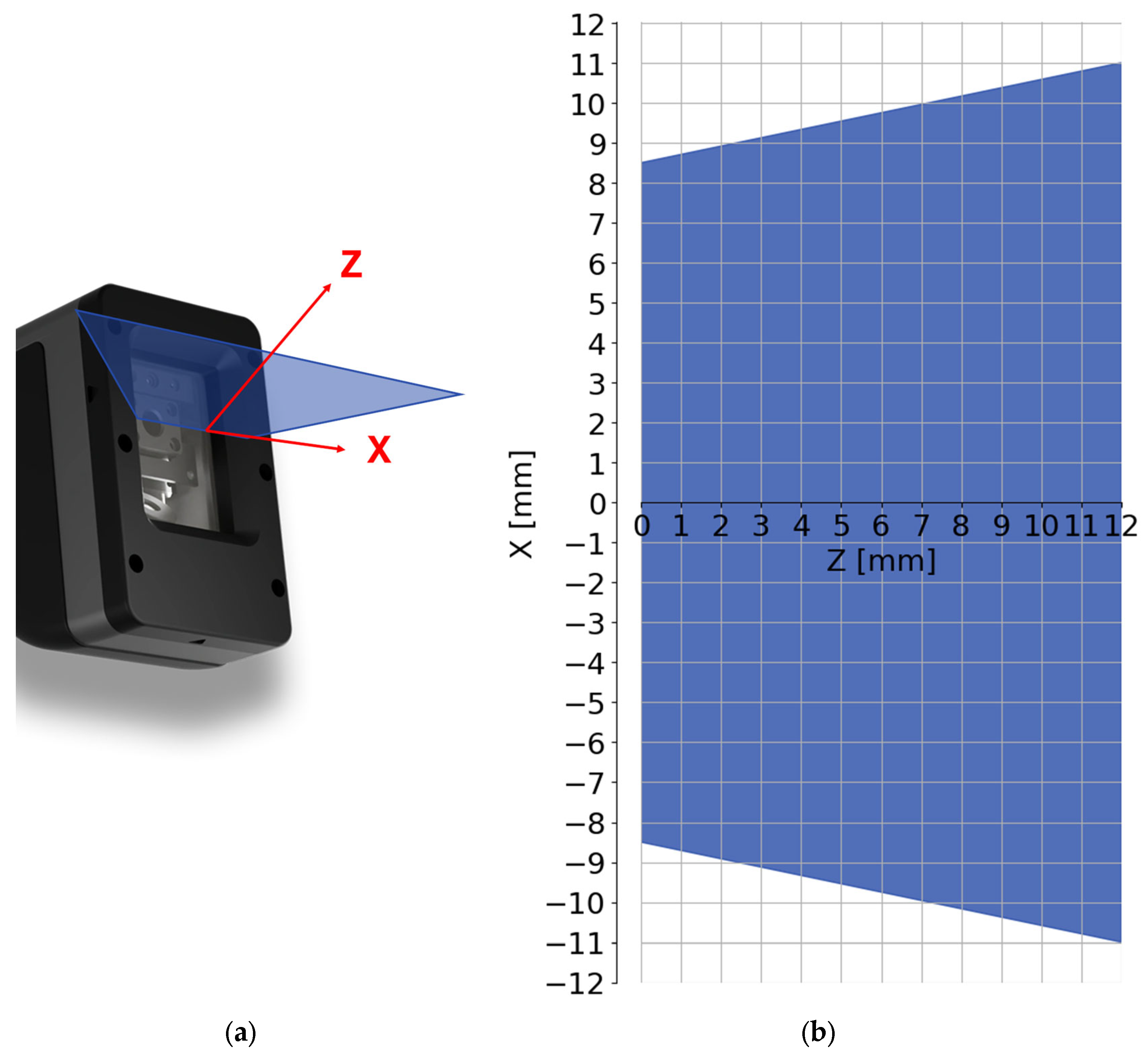 Figure 4a), which is a manual, wireless, portable laser profilometer. To obtain the LLT Field of View (FOV), the components shown in