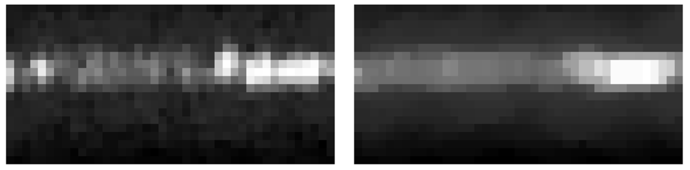 The left shows the raw portion of the image, and the right shows the same portion after using the median filter.