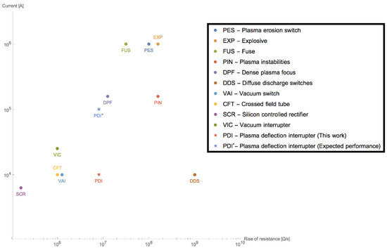 Summary of pulsed power opening switches, adapted from [8]. This current work has been included.