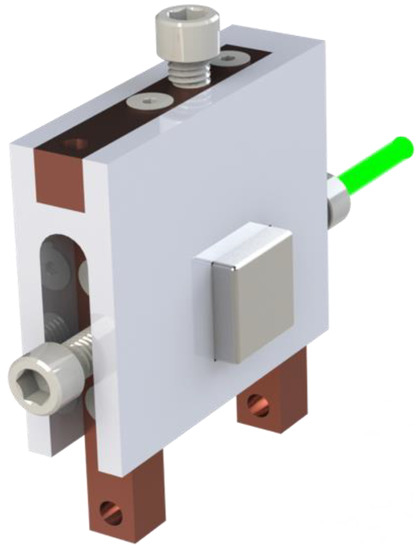 The device was constructed from UHMW plastic, copper bus bars, brass screws, and neodymium permanent magnets (Figure 3). The spacing between the load, shunt, and input electrodes were all independently variable. An annotated cross section of the switch is shown in Figure 4. The permanent magnets provided a 0.6-T magnetic field. The Nd:YAG triggered laser pulse had 500-mJ energy and 5-ns duration. The pulsed power supply was a 312-nF oil-filled capacitor, charged between 10 and 20 kV. The load circuit had a total resistance of 0.12 Ω and an inductance of 1440 nH. The shunt circuit had a total resistance of 0.09 Ω and an inductance of 700 nH. The time derivative of the current in each circuit was monitored using custom B-dot probes.