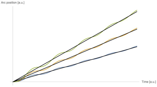 As long as the duration is longer than a few periods, a linear approximation is accurate. However, the initial conditions must also be considered; in Figure 6, the arc position was assumed to start at zero.