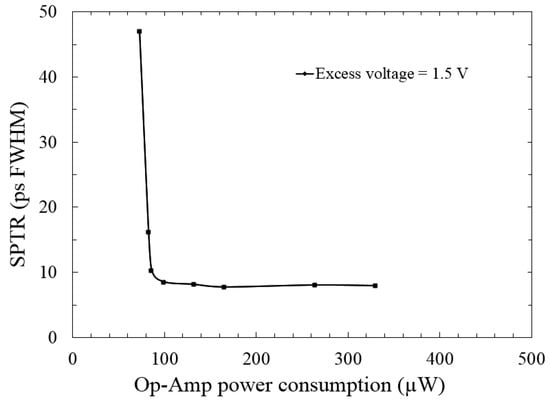 Figure 13 shows the relationship between the SPTR and the Op-Amp power consumption. A minimum of 100 µW static power consumption is required to obtain sub-10 ps SPTR. Higher power consumption does not improve the SPTR further.