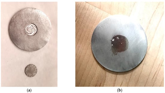 The target backing was manufactured from 1100 grade aluminum (AL1100, McMaster-Carr) because of its good heat transfer properties, low cost and low activation in the target area of a medical cyclotron. A quantity of 150–300 mg of irregularly shaped natural zinc shavings (99.9%, Sigma-Aldrich) were pressed into flat 10-mm-diameter pellets using a hydraulic press at ~12,500 MPa. A density of 94% of bulk zinc material was achieved. Targets were prepared by fusing the pressed pellet to the aluminum backing (35 mm diameter × 1 mm thickness) by heating the aluminum backing to 450–500 °C on a hotplate (Corning), then placing the pellet into the 0.3 mm deep recess. The fusing process was allowed to proceed for 20–30 s. The target was then removed from the hotplate and quickly cooled by placing it on a cold metal surface. The entire process took about 2 min. After cooling, the targets were manually polished with sandpaper of grades 400, 600, 800 and 1000 (Norton Abrasives), rinsed with methanol and dried.