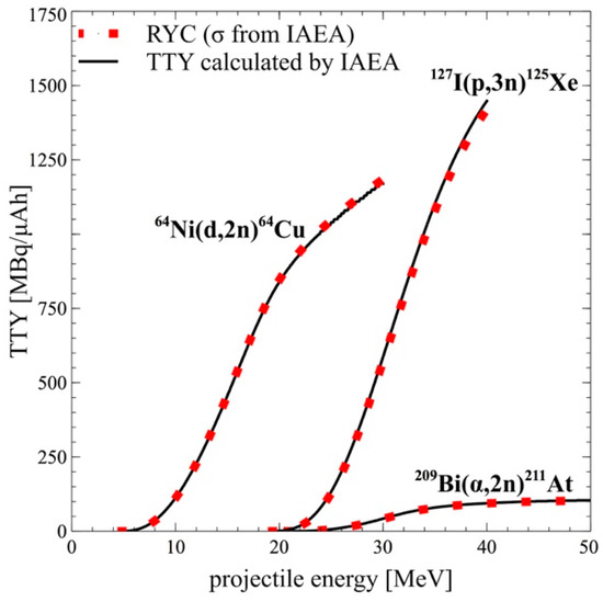 - International Atomic Energy Agency. Cross Section Database for Medical Radioisotope Production: Production of Therapeutic Radionuclides. 2011. Available online: https://www-nds.iaea.org/radionuclides (accessed on 21 January 2019).
