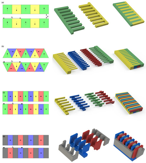 , Halbach arrays, as they offer superior magnetic field performance. If the minimum feature size of the manufacturing process is at least 4 times smaller than the required period, either