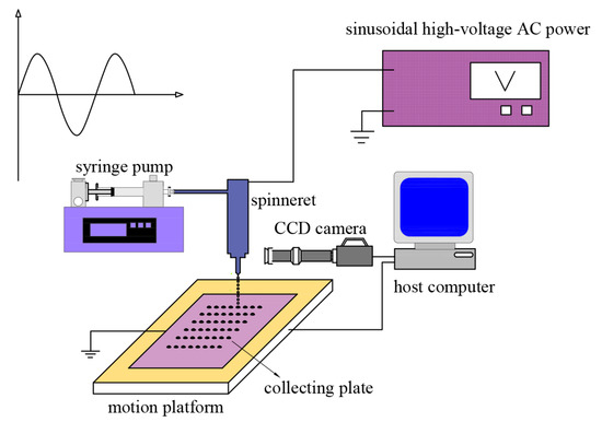 - Soldate, P.; Fan, J. Controlled deposition of electrospun nanofibers by electrohydrodynamic deflection. J. Appl. Phys. 2019, 125, 15. [Google Scholar] [CrossRef]