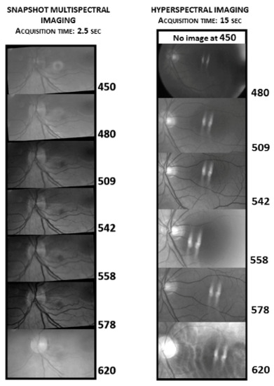 - Mordant, D.J.; Al-Abboud, I.; Muyo, G.; Gorman, A.; Sallam, A.; Ritchie, P.; Harvey, A.R.; McNaught, A.I. Spectral imaging of the retina. Eye 2011, 25, 309–320. [Google Scholar] [CrossRef]