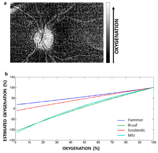 - Hammer, M.; Thamm, E.; Schweitzer, D. A simple algorithm for in vivo ocular fundus oximetry compensating for non-haemoglobin absorption and scattering. Phys. Med. Biol. 2002, 47, N233–N238. [Google Scholar] [CrossRef][Green Version]