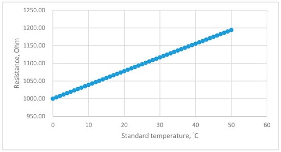 The distribution of the temperature data for standard temperature versus resistance of the PT-1000 sensor is presented in Figure 2.