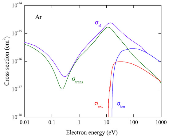 Here is the classical electron radius, is the speed of light, E is the initial electron energy. For electron-atom scattering cross sections in Ar, see Figure 8.