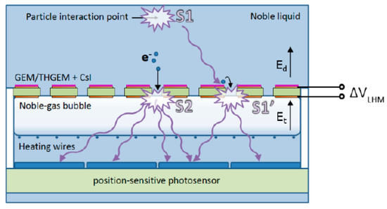 The basic concept of charge signal amplification in two-phase detectors is that of using a gas electron multiplier (GEM)-like structure in the gas phase that provides electron avalanching within the GEM holes at cryogenic temperatures: see Figure 2 and review [4].