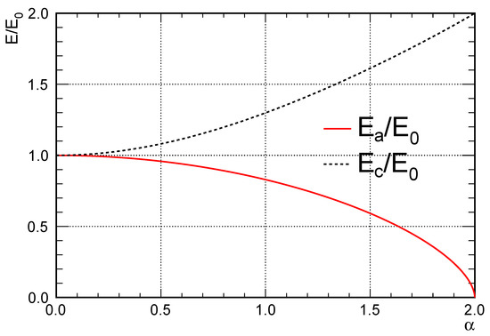 Normalized electric field at the anode and cathode as a function of the parameter , reproduced from Ref. [6].