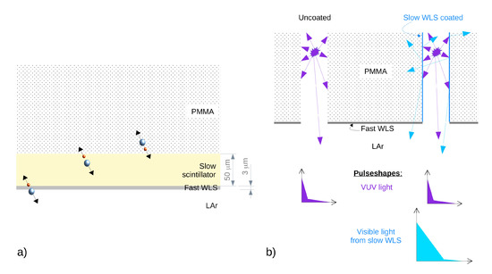 - Gallacher, D.; Boulay, M. Surface background rejection technique for liquid argon dark matter detectors using a thin scintillating layer. J. Instrum. 2020, 15, C03016. [Google Scholar] [CrossRef]