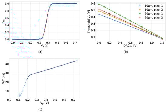 Figure 7b shows the measured threshold for the scanned range of the threshold setting for the pulseable pixels of a 10