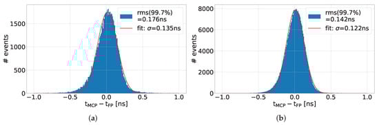This still includes a contribution from the MCP-PMT and sampling. The time resolution of the MCP-PMT is expected to be below 10