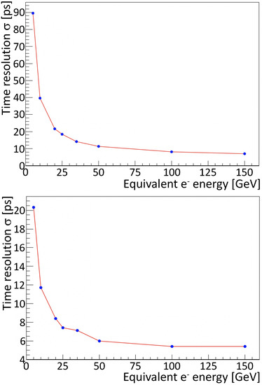 - Inami, K. A 5-ps TOF-counter with an MCP-PMT. Nucl. Instrum. Meth. 2006, A560, 303. [Google Scholar] [CrossRef]