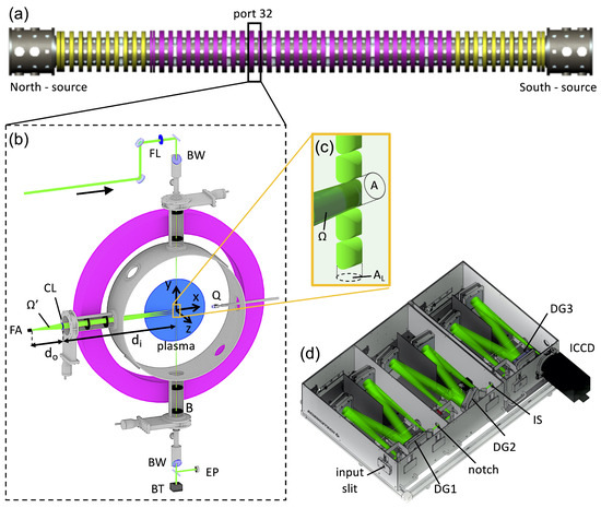 - Shi, P.; Srivastav, P.; Beatty, C.; Nirwan, R.S.; Scime, E.E. Incoherent Thomson scattering system for PHAse space MApping (PHASMA) experiment. Rev. Sci. Instrum. 2021, 92, 033102. [Google Scholar] [CrossRef]