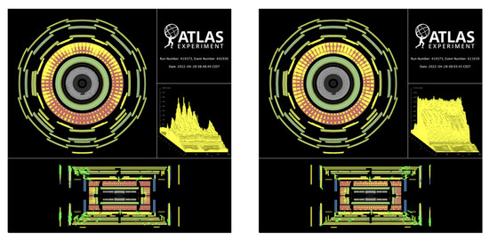 After the October 2021 LHC pilot run, the next milestone of the commissioning of the upgraded detector happened in April 2022, when the proton beams started circulating again in the LHC for the start of the LHC Run 3. Figure 11 illustrates two events recorded by the ATLAS detector from the LHC beam splashes on the first day of LHC Run 3 operations in April 2022. The data visualised in the picture have been recorded using the legacy trigger based on energy deposits in the LAr electromagnetic calorimeter on the C-Side of the detector. The analysis of these first LHC Run 3 beam splashes confirmed that the LAr calorimeter is ready for the start of the LHC Run 3 stable beams and physics data-taking runs in Summer 2022.