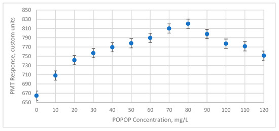 FEU-115 PMT response for different POPOP concentrations in a 10 g/L PPO scintillator.