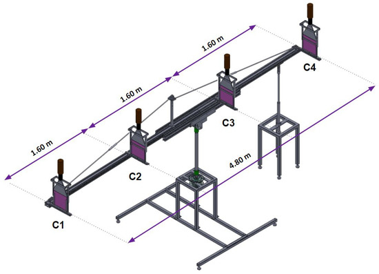 The muon telescope used for the present study is composed of four stations of scintillator plastic detectors, equidistantly separated within a range of 4.8 m. By registering straight-through muons going through all four detector stations, a high reduction of fake muon backgrounds is achieved. The detectors are assembled within lateral metallic frames that are then mechanically attached to retractable solid aluminum rails with a maximum length of 5 m.