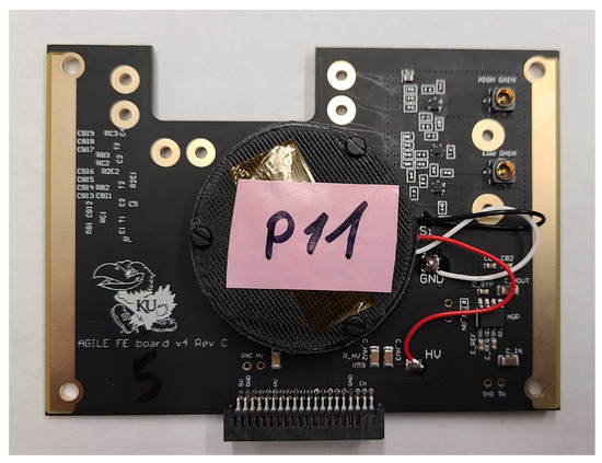 As mentioned in the previous section, the fast sampling method allows reconstructing both the amplitude and the duration of the signal. A photograph of one detector layer with the readout electronics that are part of the device to be sent into space is shown in Figure 3.