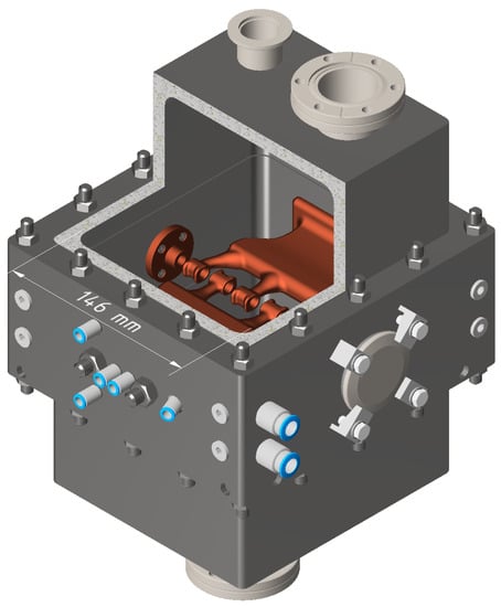 - Wolf, C.R.; Beck, F.B.; Franz, L.; Neumaier, V.M. 3D Printing for High Vacuum Applications. In Proceedings of the 22nd International Conference on Cyclotrons and Their Applications (Cyclotrons’19), Cape Town, South Africa, 22–27 September 2019; pp. 317–320. [Google Scholar] [CrossRef]