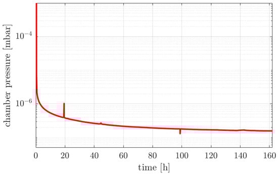 New vacuum measurements were performed in early 2022, where a pressure of mbar was reached using stainless steel AM parts. During the whole 160 h of measurement, no excessive or erratic outgassing was observed. It has to be noted, that while the cavity lids and frame were sealed on conventionally manufactured surfaces, the AM drift-tube structures inside the cavity also have sealing surfaces on the bottom which are also sealed using mm aluminum wire. This demonstrates that even direct vacuum sealing surfaces can be manufactured with 3D printing. Of course, the surface has to be milled flat after printing, as the surface roughness of a raw printed part would not suffice, but the material density and quality is suitable for HV to UHV applications. At the demonstrated vacuum level of mbar, it can be expected, that a base level vacuum of mbar is achievable without RF power. Therefore, high-power RF operation is expected to be performing as usual. A pump-down curve from these latest measurements is shown in Figure 2.