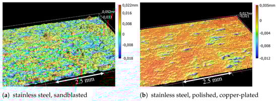 (a) Surface scan of a stainless steel AM drift-tube structure after manufacturing and light sandblasting. Surface roughness μm. (b) Exemplary surface profile after copper plating the slip grinding polished AM drift-tube structure. Surface roughness μm. Measured on Keyence VR6000.