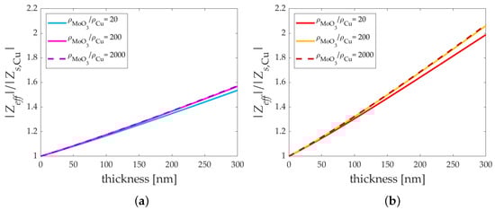 Z e f f = Z s , MoO 3 Z s , Cu + i Z s , MoO 3 tan k MoO 3 t Z s , MoO 3 + i Z s , Cu tan k MoO 3 t ,