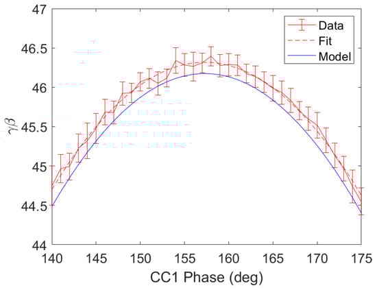 The beam energy was measured using a dipole spectrometer. Using the geometry of the system and the magnetic field in D122 (as shown in the Figure 1), the beam kinetic energy can be calculated using the relationship , where B is the magnetic field, is the bending radius of the magnet and p is the beam momentum. is determined by the geometry of the system. By varying the phase in CC1, the beam energy can be controlled directly. Given that a sinusoidal energy kick was imparted by CC1, the kinetic energy of the beam at the exit of the gun can also be deduced.