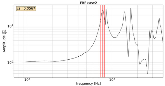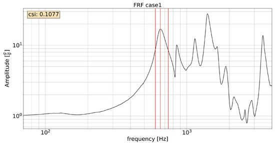 In both cases, the input profile was harmonic, with an amplitude of 4.905 ( g), spanning between 20 Hz and 3.5 kHz. As specified before, the analysis focused on the first peak, which is considered the most relevant for the present discussion.