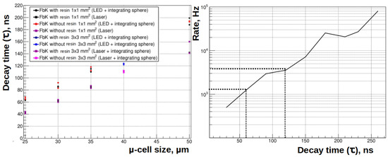 - Signal decay time: see Figure 2 (right panel). We confirmed our expectation: in the case of the AC/DC coupling readout, by reducing the decay time of the SiPM signal, one can significantly reduce the fake rate while keeping the same sensitivity to the signal.